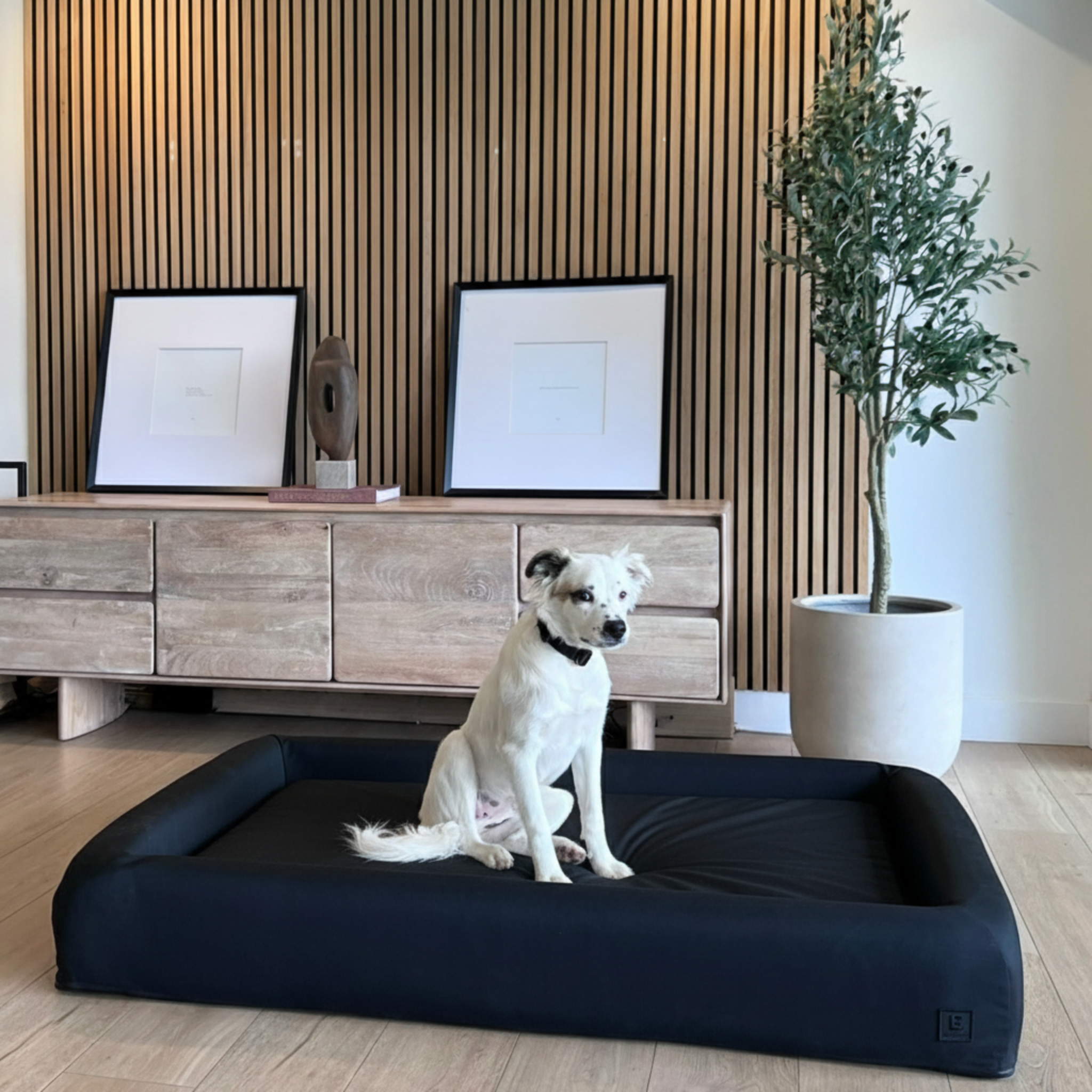 • Provides more square footage and support for larger dogs to rest their heads. Smaller pups love to nestle in and use the bolster as a back rest.