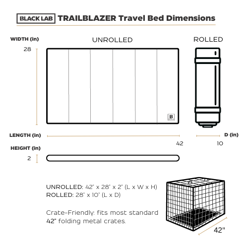 One Size fits all: We have chosen a size that is crate friendly and designed to be useful for most dogs, big or small. Compact, this bed rolls up for easy transportation. The shoulder strap doubles as a leash for life on the road.